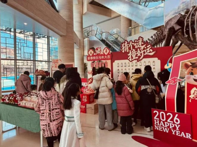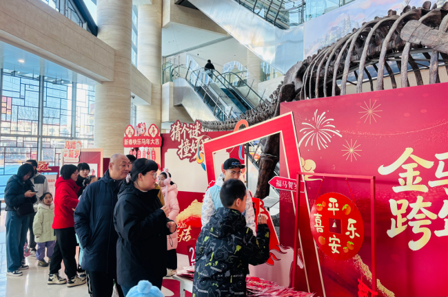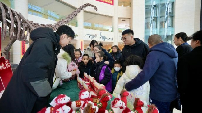 节日期间,全新推出的“马踏新岁”贺岁展以及多项沉浸式体验活动精彩纷呈。新年首日,“马上知源”科普课堂引领孩子们探寻马的演化奥秘;“骏马迎春”非遗剪纸区在传承人的悉心指导下,让寓意美好的剪纸作品传递新春祝福;“巧手拼骏马”手工区人气旺盛,孩子们尽情创作新年礼物;“马年马语”猜谜区欢声笑语不断,全家人在思维的碰撞中感受节日喜悦。主题打卡点“马上留福”与全馆寻宝活动“寻马记”更是将观展过程转变为充满惊喜的探索之旅。