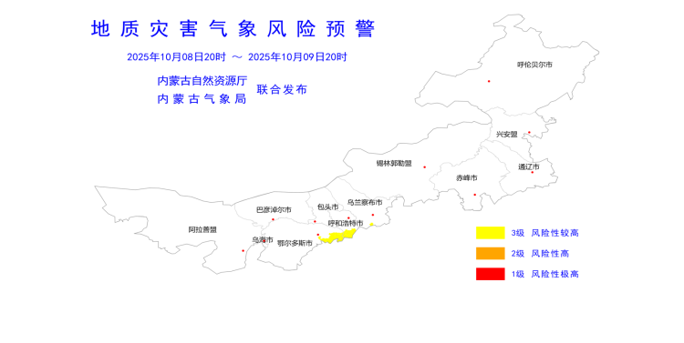 2025年10月08日20时—2025年10月09日20时地质灾害气象风险预警结果