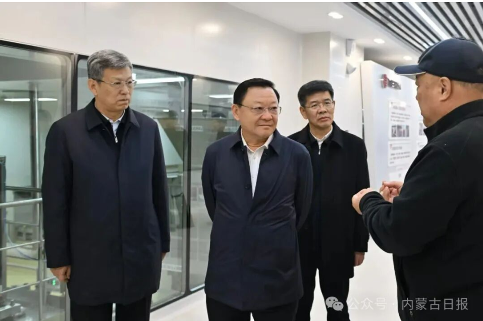 11月2日,自治区党委书记王伟中来到蒙东(通辽)高端重型基础装备制造产业基地,听取龙马集团产业规划、产品研制等情况介绍。记者 马建兵 摄
